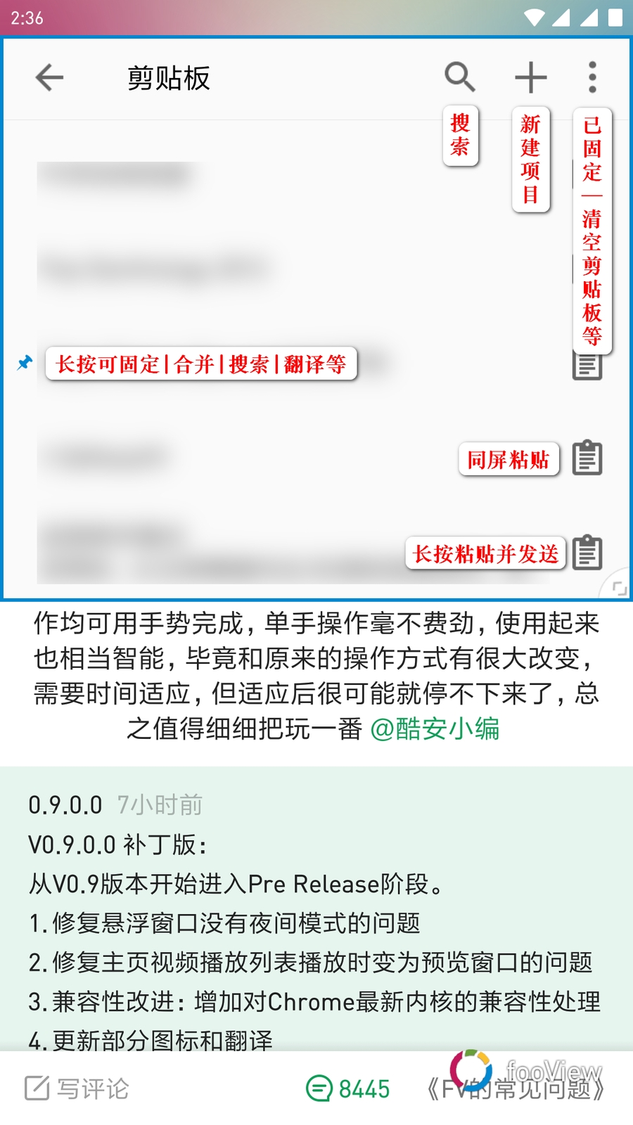 通过手势、长按、快速访问来快速打开/关闭剪贴板。